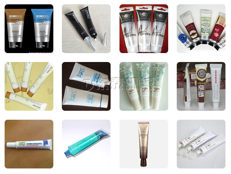 1.適用于醫藥、食品、化妝品、日用化工等行業,對復合管,塑料管,鋁管進行灌裝封尾??蓪⒏鞣N糊狀、膏狀、粘度流體等物料順利準確地注入軟管中,并完成封尾和打批號、生產日期等。